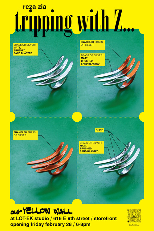 reza zia/ tripping with Z… / opening friday 28th February 2025 I haven’t yet done anything at LOT-EK, but this does look enticing. Also by Reza Zia